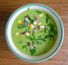 Crème de chou fleur, crumble de farine complète, huile d’olive, parmesan, graines germées